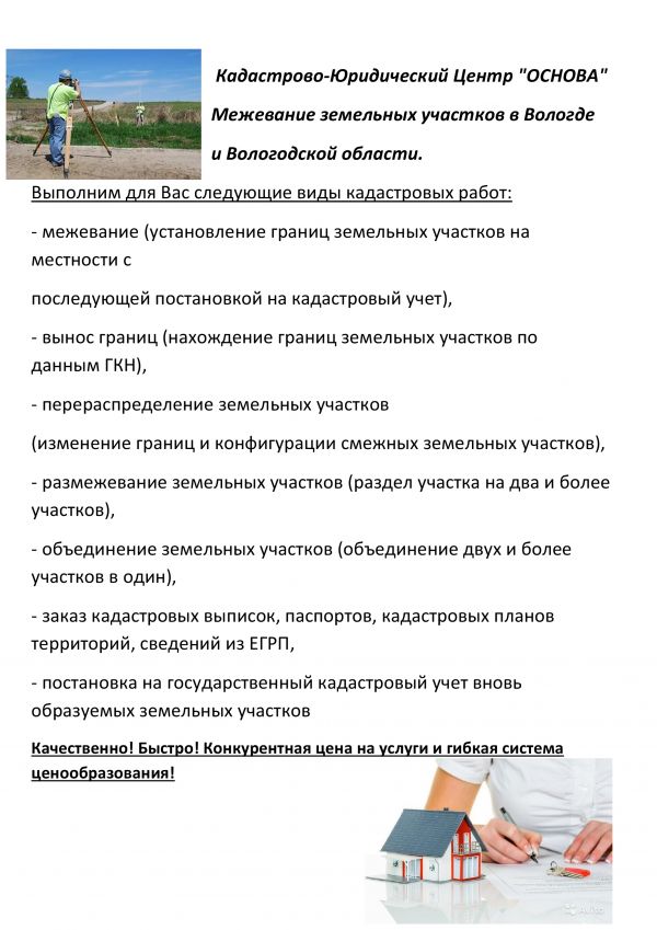 Кадастровые работы межевание земельных участков перепланировки, проекты юридические услуги